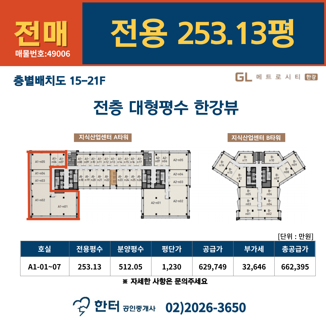 한터공인중개사 | 서울특별시 금천구 가산동 371-28 우림라이온스밸리 A-123호 대표번호 : 02-2026-3650 | 이메일 : gisanai@naver.com 부동산등록번호 : 가4366-0727 | 사업자등록번호 : 609-04-99410 | 대표 : 조현용