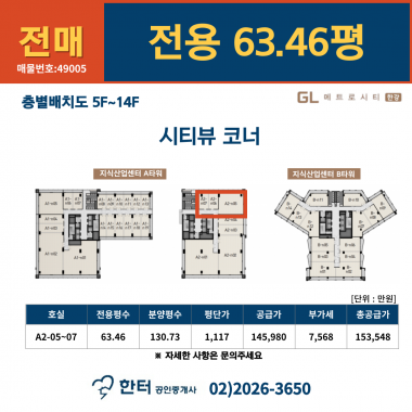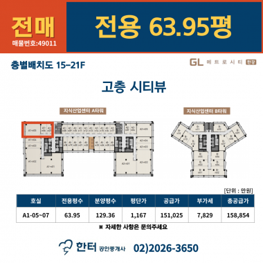 한터공인중개사 | 서울특별시 금천구 가산동 371-28 우림라이온스밸리 A-123호 대표번호 : 02-2026-3650 | 이메일 : gisanai@naver.com 부동산등록번호 : 가4366-0727 | 사업자등록번호 : 609-04-99410 | 대표 : 조현용